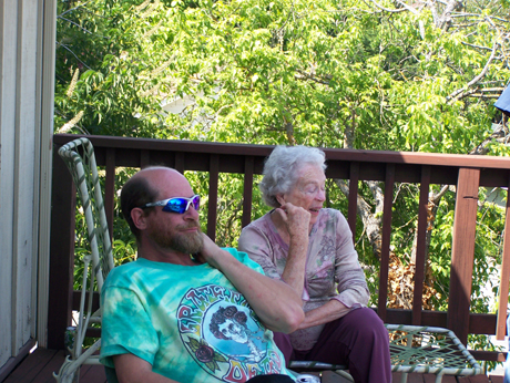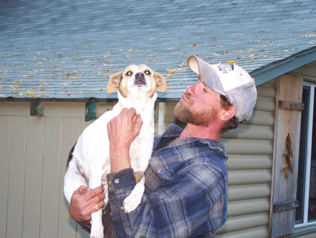 John and Mom John with Daisy his favorite dog in the area. John says he has many dogs, owner of none, and loves them all. John has his 30 year pin with the Plasterers and Cement masons of Northern California.